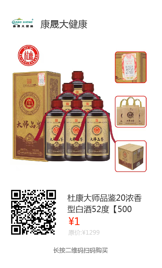 杜康大师品鉴20浓香型白酒52度【500ml*6瓶】