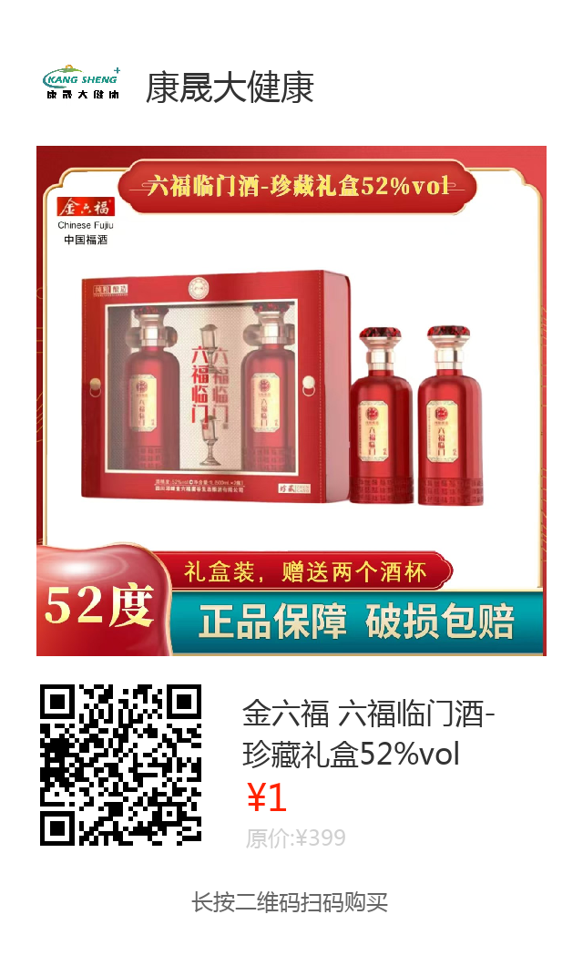金六福 六福临门酒-珍藏礼盒52%vol1提装(2瓶)