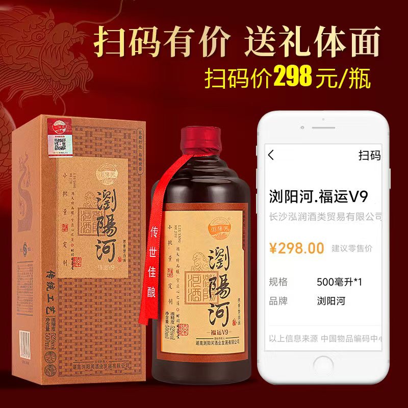 浏阳河52度浓香型白酒纯酿高粱酒【500ml*6瓶】